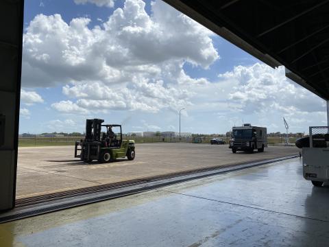 Quincy Allison (ESPO) is shown offloading cargo at the JSC 990 hangar.