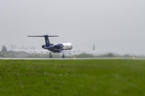 The NSF/NCAR G-V (N677F) arrives at Osan AB as part of the ACCLIP campaign.