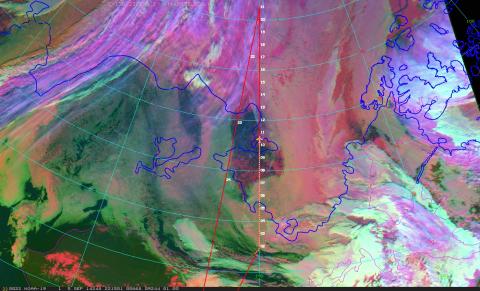 AVHRR RGB satellite image at 22:15 UTC on September 5, 2014 while the C-130 was transiting north along the 140W line.