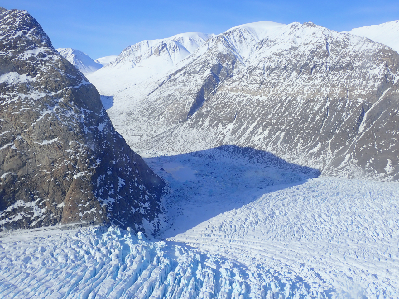 Ice rubble remnant from a catastrophic ice-marginal lake drainage, in mountain shadow