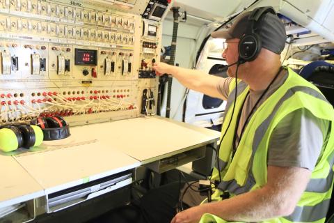 Adam Webster is shown during a Media Day demonstration.