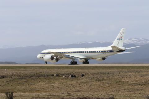 N817NA DC-8 conducts flight operations during NASA's Operation Ice Bridge. Nov 2018, Ushuaia, Argentina.