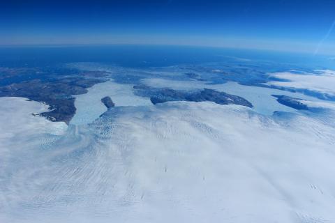 Ikertivaq Glacier, with several outlet channels emptying into the large bay.