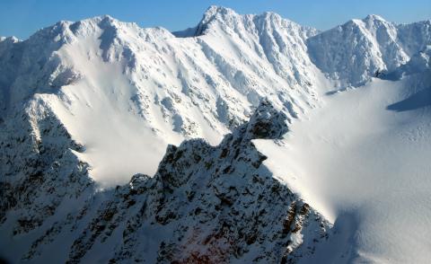 Rugged mountains of northwestern Svalbard, from the P-3's cockpit. The entire archipelago of Svalbard is steeply mountainous and visually quite stunning, which is one of several reason it has become a popular tourist destination in recent years.