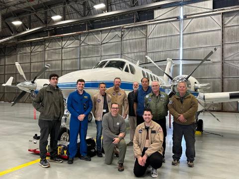 Science Flight #1 completed for the B-200 on Thursday, April 6, 2023! Members of the science party and aircraft operations are all smiles after a successful day of collecting science.