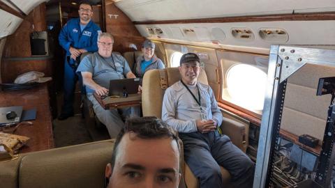 All smiles over New York City aboard the GV. From left: Nick Mustachio, John Hair, Laura Judd, Taylor Shingler and Sam Xiong.