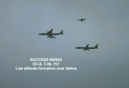 DC8, T39, and 757 in formation over Salina airport